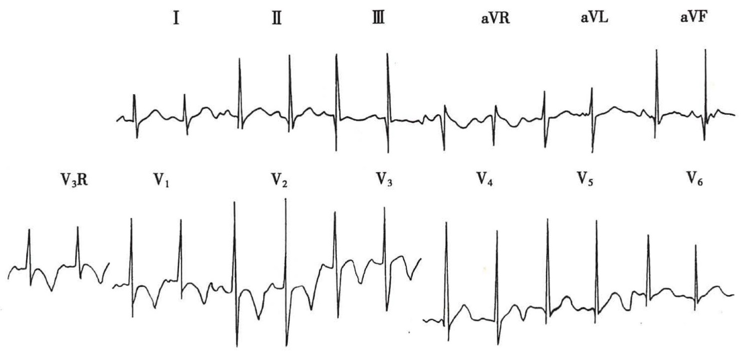 成人ST段抬高在V2和V3较明显,可达0.2mV或更高