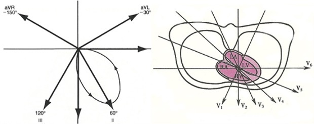 右心室壁厚度仅有左心室壁的1/3,只有当右心室壁的厚度达到相当程度时,才会使综合向量由左心室优势转向为右心室优势。同时,位于右心室面导联(V1、aVR)的R波增高,位于左心室导联(I、aVL、V5)的S波变深。