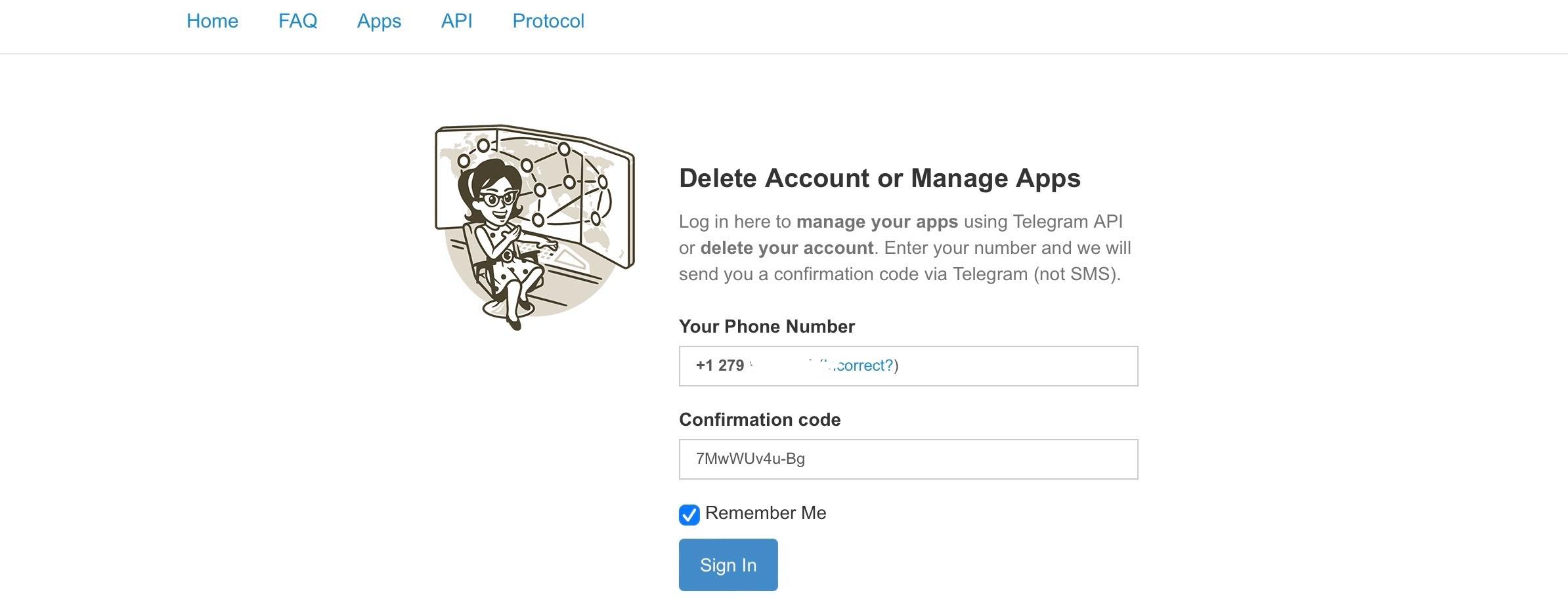 1. 登录Telegram应用管理页面https://my.telegram.org/,输入TG的手机号码进行登录