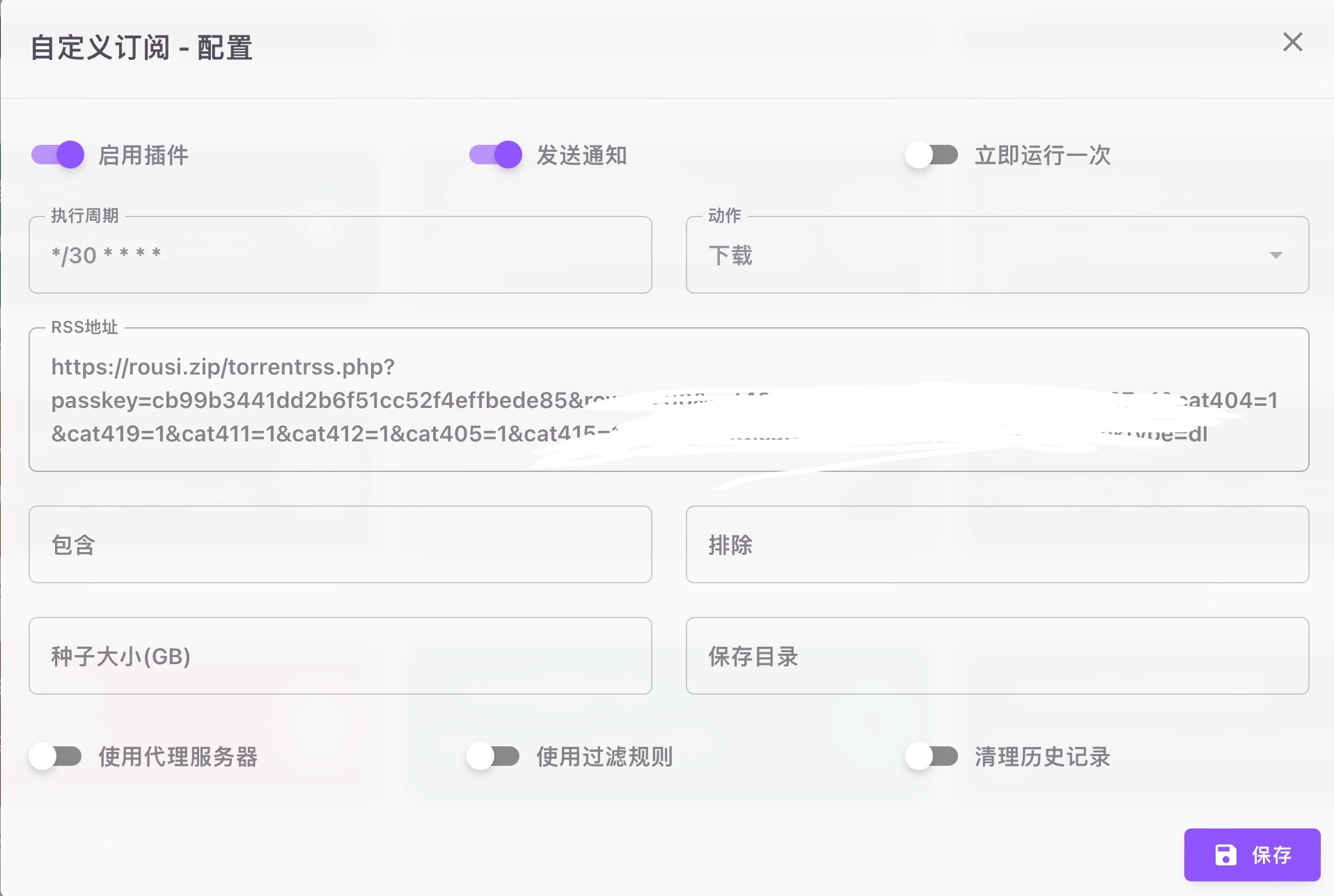 复制PT站生成的RSS订阅链接