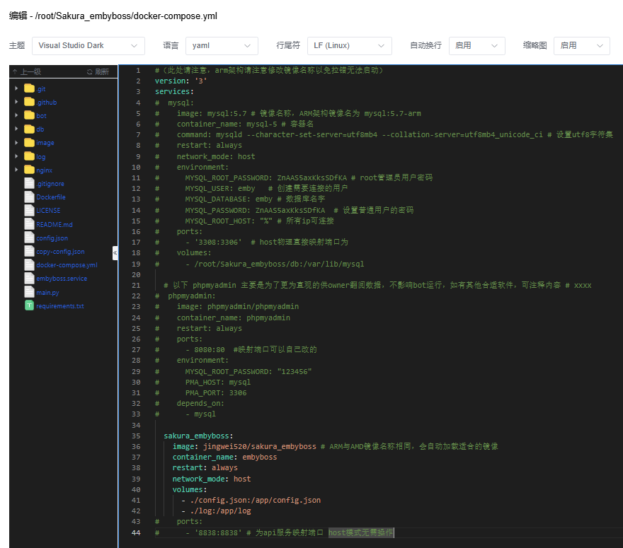 拉取的源码文件路径默认在/root/Sakura_embyboss