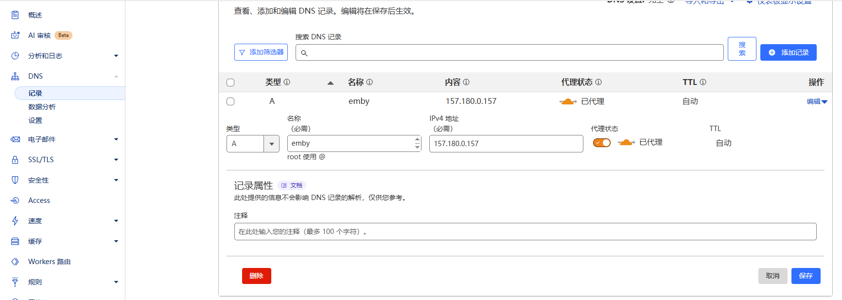 2.在Cloudflare修改A记录