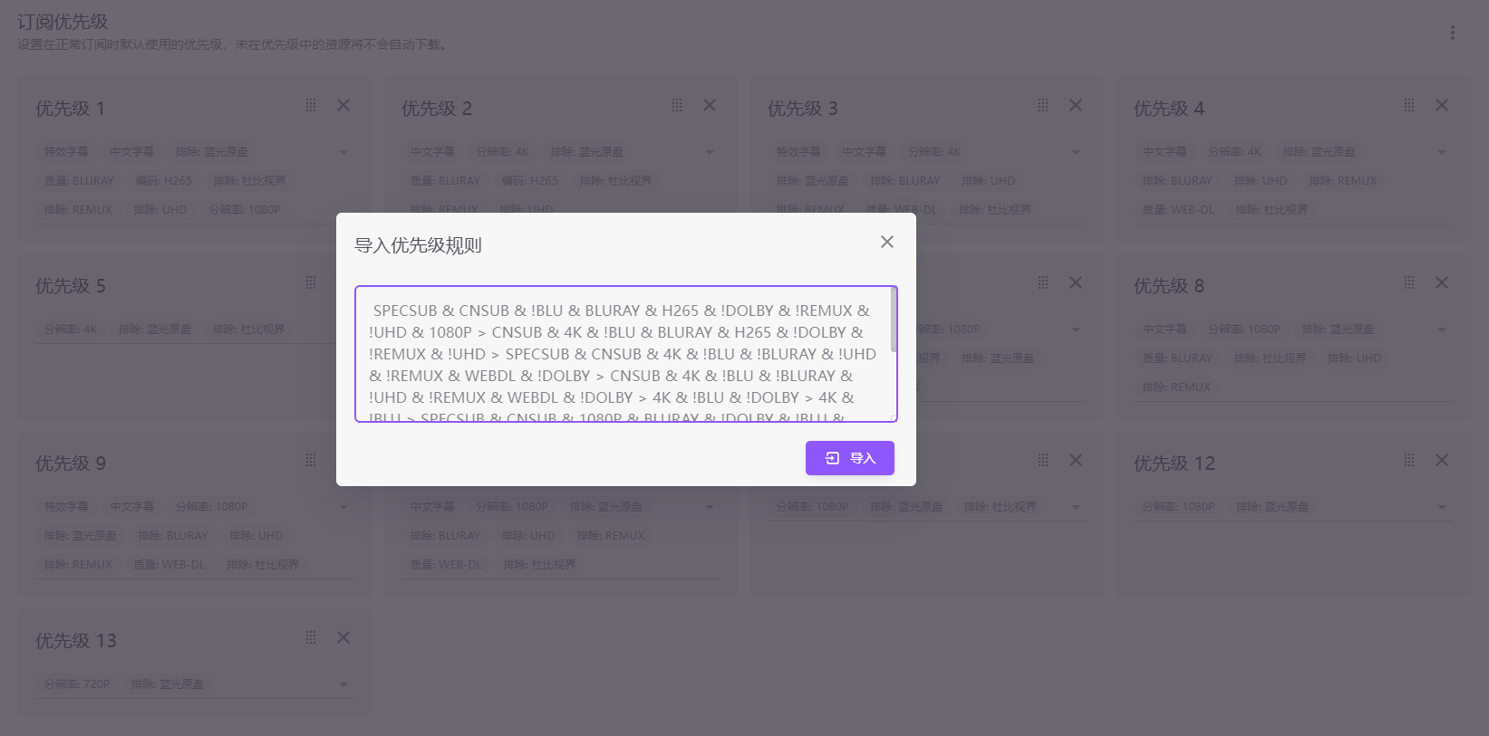 SPECSUB & CNSUB & !BLU & BLURAY & H265 & !DOLBY & !REMUX & !UHD & 1080P > CNSUB & 4K & !BLU & BLURAY & H265 & !DOLBY & !REMUX & !UHD > SPECSUB & CNSUB & 4K & !BLU & !BLURAY & !UHD & !REMUX & WEBDL & !DOLBY > CNSUB & 4K & !BLU & !BLURAY & !UHD & !REMUX & WEBDL & !DOLBY > 4K & !BLU & !DOLBY > 4K & !BLU > SPECSUB & CNSUB & 1080P & BLURAY & !DOLBY & !BLU & !UHD & !REMUX > CNSUB & 1080P & !BLU & BLURAY & !DOLBY & !UHD & !REMUX > SPECSUB & CNSUB & 1080P & !BLU & !BLURAY & !UHD & !REMUX & WEBDL & !DOLBY > CNSUB & 1080P & !BLU & !BLURAY & !UHD & !REMUX & WEBDL & !DOLBY > 1080P & !BLU & !DOLBY > 1080P & !BLU > 720P & !BLU