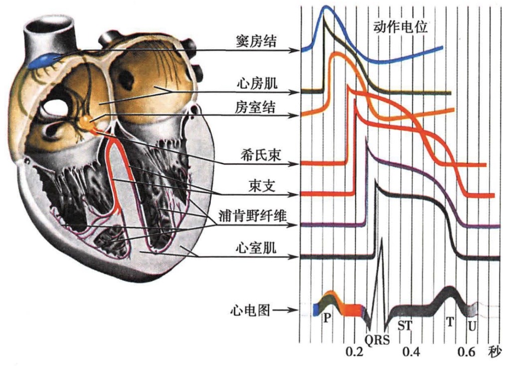 上文提到的心脏的传导系统,与每一心动周期顺序出现的心电变化密切相关。