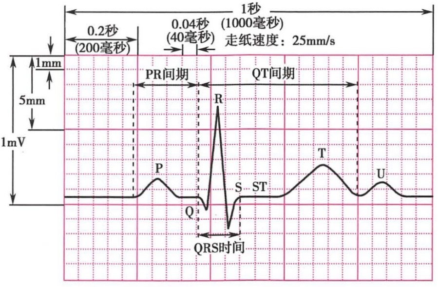 心脏机械收缩之前,先产生电激动,心房和心室的电激动可经人体组织传到体表。心电图( electro cardio gram,ECG)是利用心电图机从体表记录心脏每一心动周期所产生电活动变化的曲线图形。