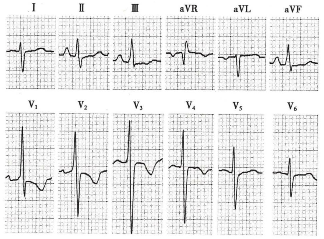 右心室壁厚度仅有左心室壁的1/3,只有当右心室壁的厚度达到相当程度时,才会使综合向量由左心室优势转向为右心室优势。同时,位于右心室面导联(V1、aVR)的R波增高,位于左心室导联(I、aVL、V5)的S波变深。